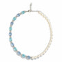 - An asymmetrical composition of pearls and cool-toned stones, designed to reflect balance found in individuality