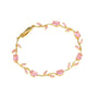 This bracelet is crafted with a vine-inspired silhouette, where the gold-plated branches twist gracefully, embracing pink marquise and round cubic zirconia to mimic blooming petals. It captures the softness of spring and adds a romantic shimmer to your everyday look.